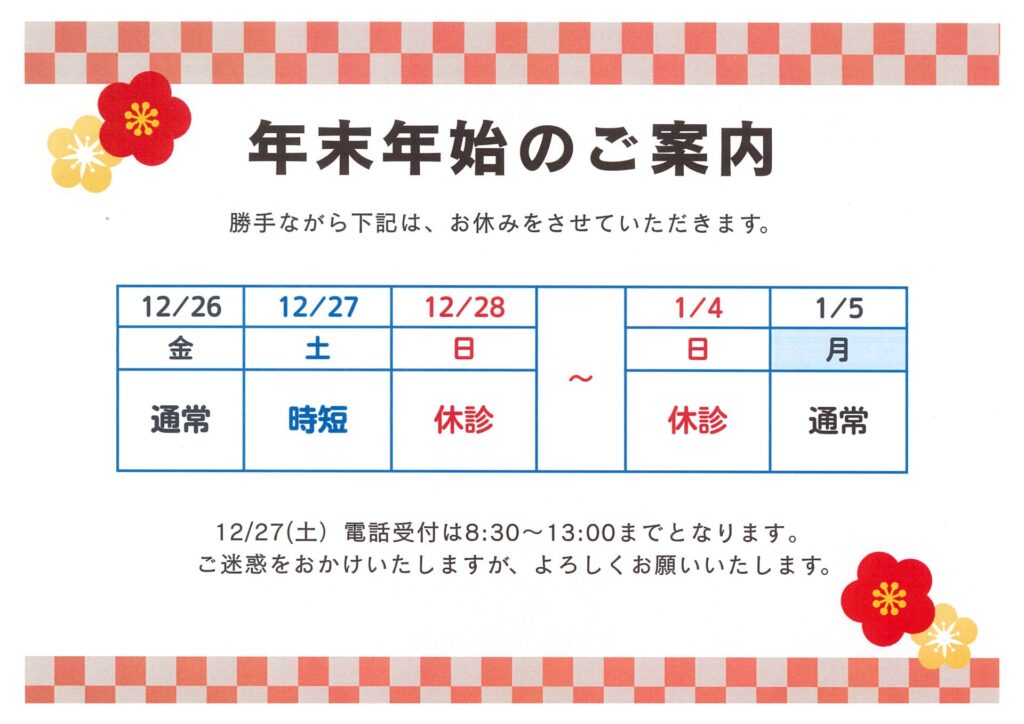 年末年始営業のご案内